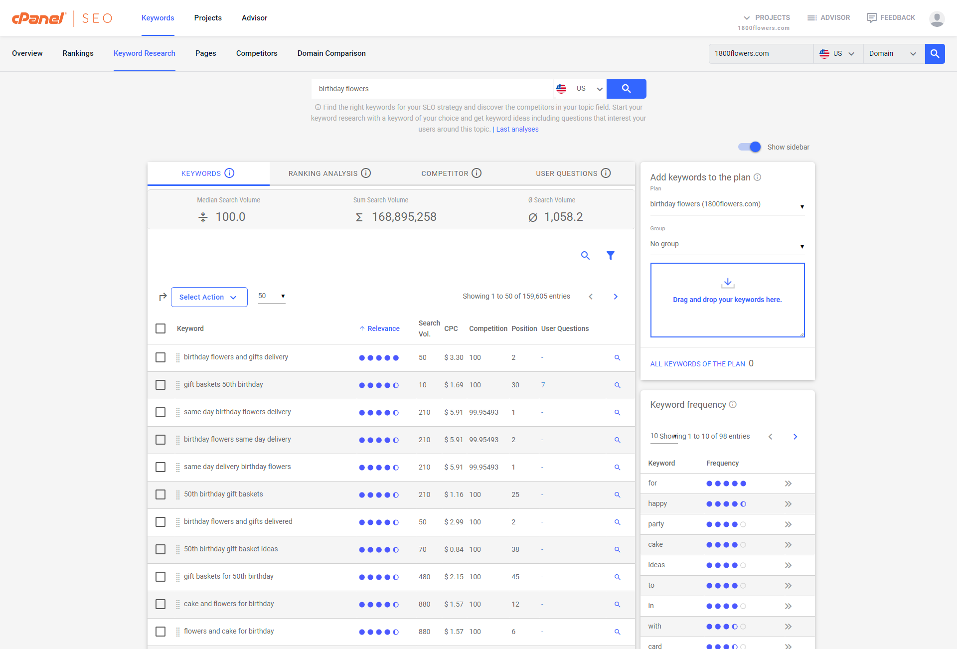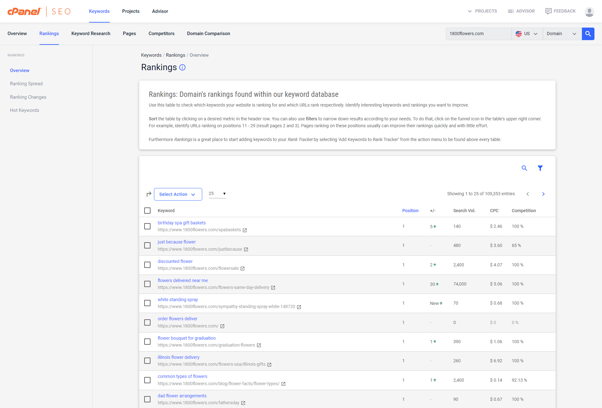 You don't have to be an SEO expert to improve your business's Google rankings. cPanel SEO will identify the best keywords for your business while also keeping an eye on the performance of your competitors.